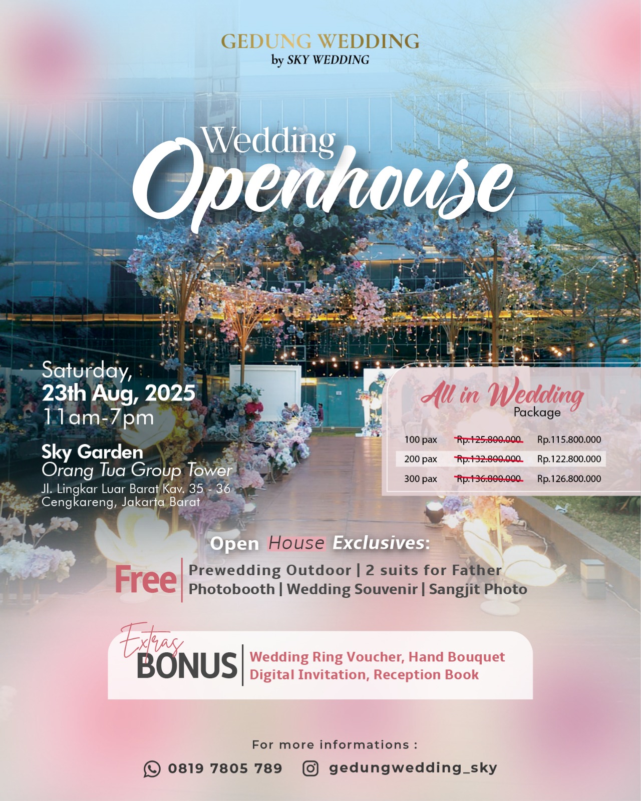 Gedung Wedding by Sky Wedding mengundang Anda untuk hadir dalam acara Wedding Open House.